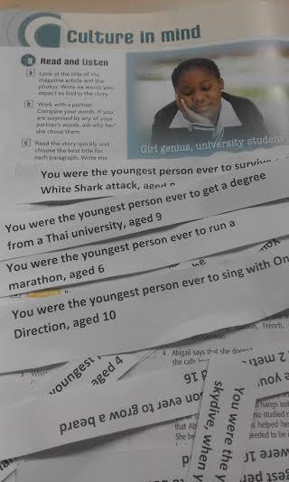 We recently looked at an article in English in Mind about a child genius. She was the youngest black female ever to get a place at an American university. I created a few activities based on information in the text which went down ok, but it was the follow-up task that was really successful.