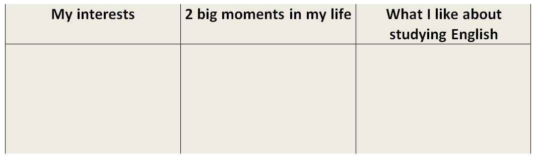 Ask students to draw a table in their books with three different columns (my ones below are a bit different to Pugliese’s)