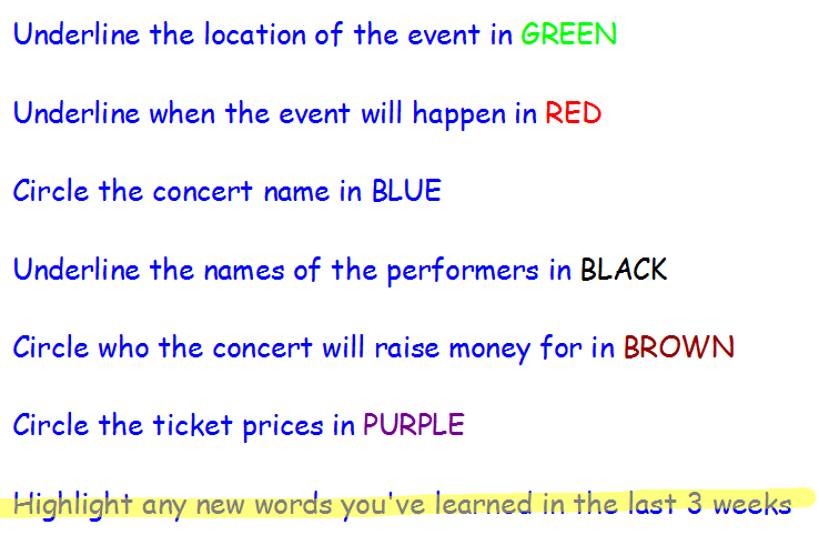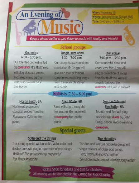 Last week’s task was to create a poster for a fundraising concert. During the prep students consolidated their knowledge of some key features to include in their own poster by annotating the model in their workbooks: