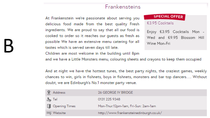 So, that just leaves the information about pubs. I decided to use authentic material that I found on https://www.greatergrassmarket.co.uk which was really useful. I snipped it into mini about 8 mini texts like this: