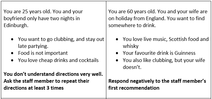 Plus they would need information and language related to bars in Edinburgh, so they had some places to recommend.