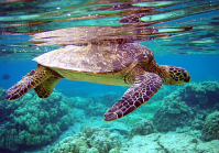 The creature – one of the most beautiful and graceful creatures in the ocean. Everyone who sees a green turtle is in awe of it. They can live up to 100 years and have very few predators. They allow other fish such as remora to cling to their shell in a mutually beneficial arrangement – the fish keeps the turtle clean, the turtle offers the fish protection.