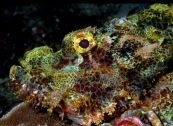 The creature – KEEP YOUR DISTANCE! One of the most dangerous fish around. A stonefish (that one you tread on and die) is a type of scorpionfish. They ambush prey, making them even scarier. You’ve been warned…