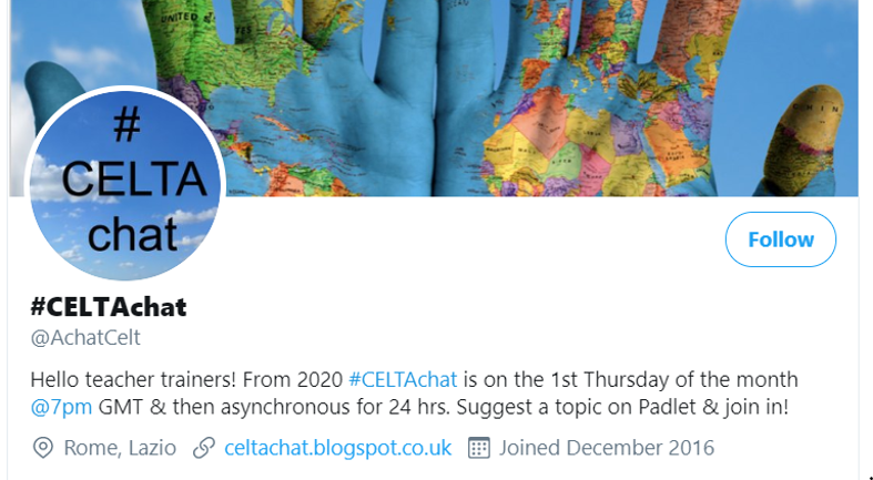 Hardly an extensive list, I know. So, what am I missing? There must be loads of these chats out there. I’ve come across these in the last six weeks – I’m sure there are loads more around. Please comment with details of other chats for ELT teachers/trainers. Thanks.