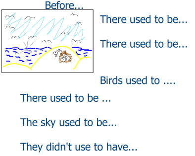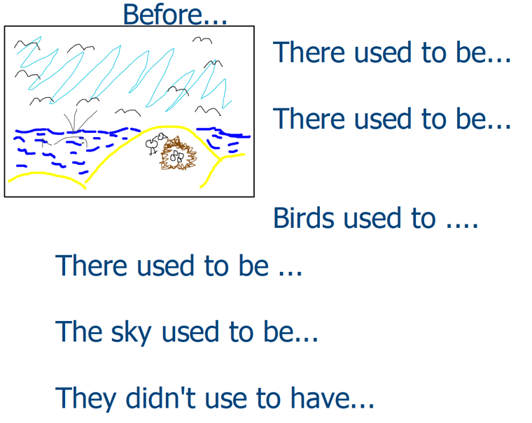 Briefly explain ‘used to’… elicit sentences about the model drawing: