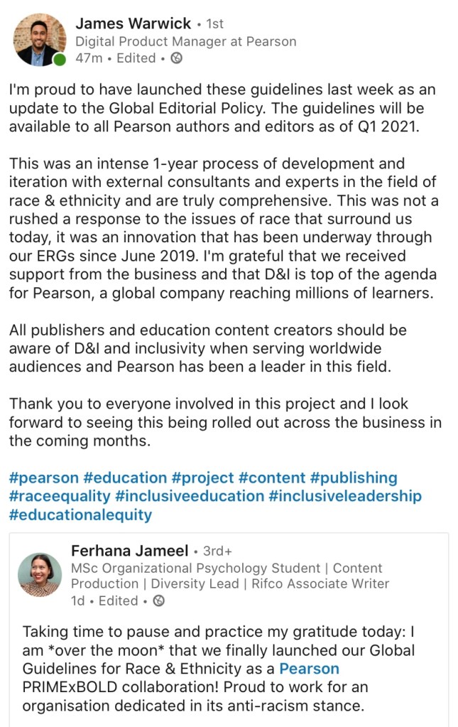 I’ve seen info about this EDI-related policy update from Pearson doing the rounds, but not seen the actual policy myself. Still, a heads up anyway, see this LinkedIn post:
