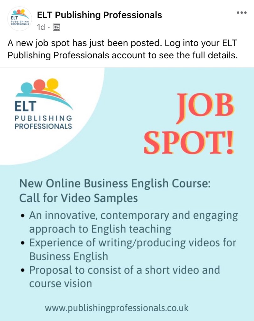 Not many job spots on ELTpp recently, more people advertising direct e.g. on LinkedIn. Oh wait, there was one…