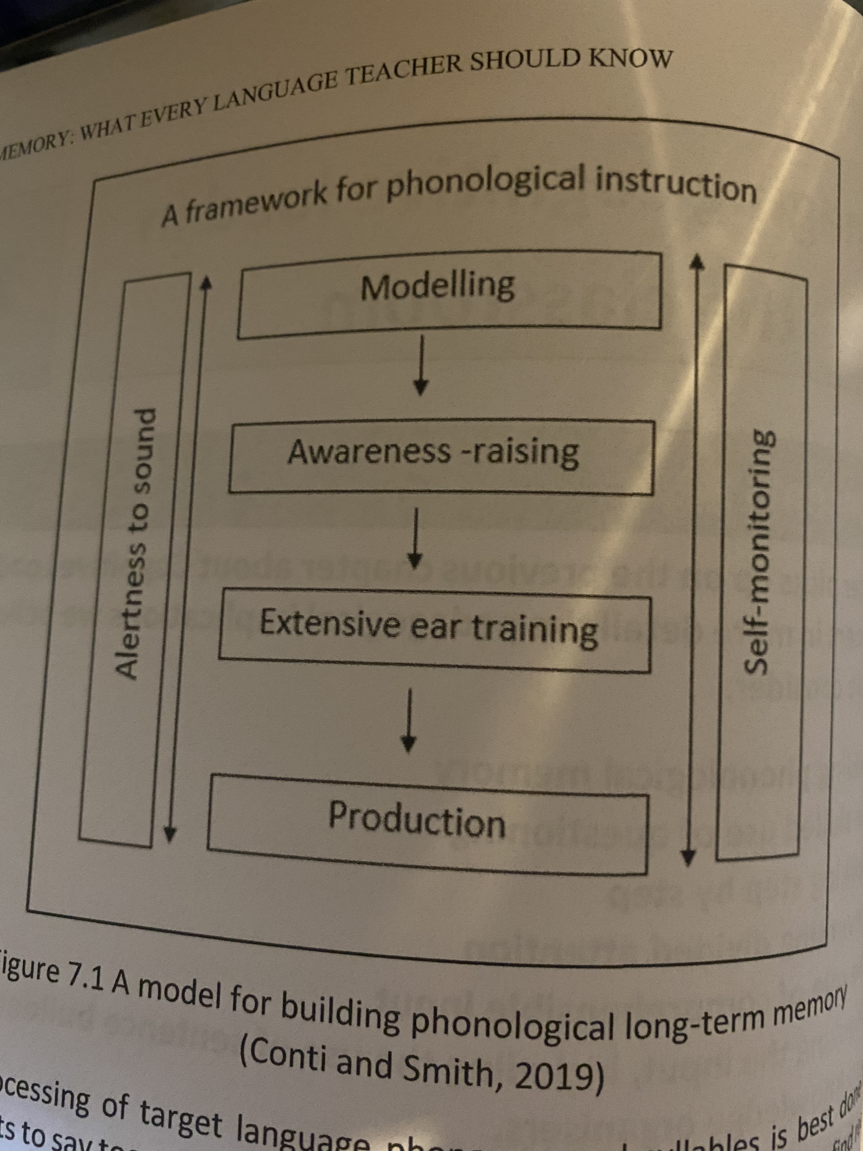 Conti and Smith (as does Underhill) highlight the importance of inner speech, like self-rehearsal of certain phonological features, prior to production.