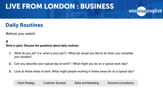 - The first two questions personalize the topic, using questions taken directly from the video.