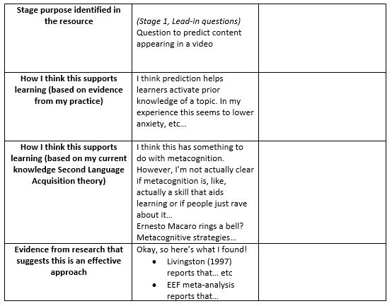 - Delve deeper – do you think any parts of each stage are redundant or lacking purpose. Train your eye as a teacher-editor! The resource has been published, but do you feel some content slipped through the net? Be brutal!