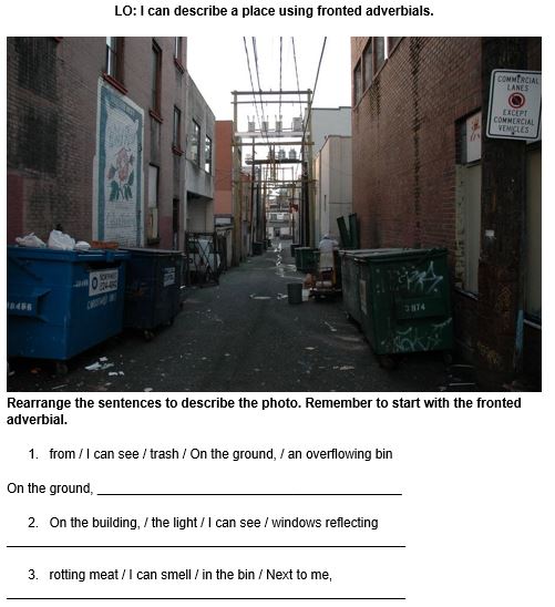 In their literacy classes, students were learning to use fronted adverbials (was a new one for me tbh). They were also reviewing expanded noun phrases as part of the same activity – descriptive writing based on images.