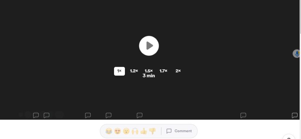 As you watch a video you can add comments. You click the comment button and the video will pause automatically, then you add your thoughts. You can emoji-react at any point during the video, and you can instantly record a video response after you watch too.