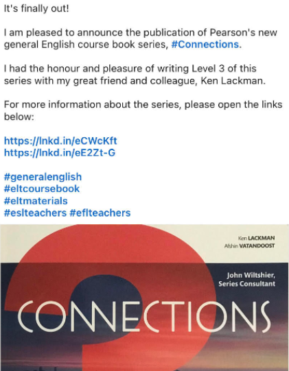 - This from Afshin Vatandoost – a new general English coursebook series from Pearson.