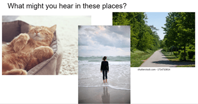 Go back to that ‘Close your eyes, what can you hear?’