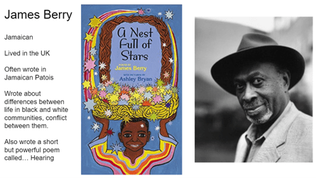Optional, some info about poet. I included this as the Year 4 students were looking at his patois poems and poets background so chance for EAL learners to share any probs with these concepts.