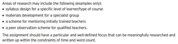 Whatever product you create for the project, try and get feedback from multiple sources. Again, I know it’s a small study. But if you create a syllabus, get feedback from managers, teachers AND learners if you can/if relevant. For a training course – maybe teachers and aDOS/DOS, etc. It just adds weight to the research and validity to the findings.