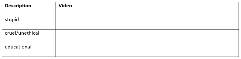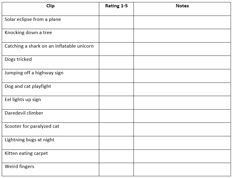 - Rate each video from 1-5 based on how interesting it is (1=boring, 5=awesome!)