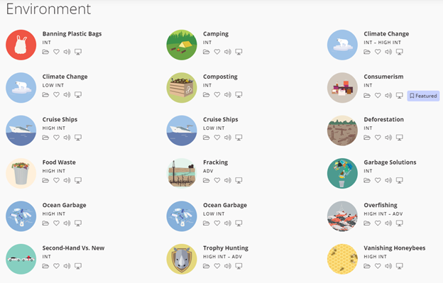 I’d say ESL Library is well worth the subscription. There’s so much available on the site and plenty that suits (or can be adapted for) my current learners. I really like their ‘Discussion Starter’ resources, three or four of which I’ve made good use of in class. Plenty of the environment discussions relate to the Sustainable Development Goals making them useful in my context: