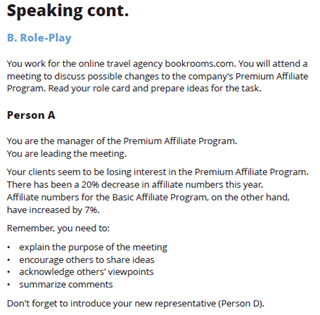 I normally ended each resource in this series with a chunky roleplay as a vehicle for using that functional language. I decided to add prompts to each role (see the ‘remember you need to’ bit in the example below), again just to facilitate and make the resource more accessible to lower levels.