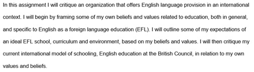 My previous post included some tips on how to approach the PGCEi Module 1 (Nottingham) process work. This post moves on to the assignment itself. A reminder that the process work was…