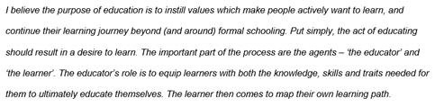 - A 1000-word piece of process work outlining your own educational beliefs and values.