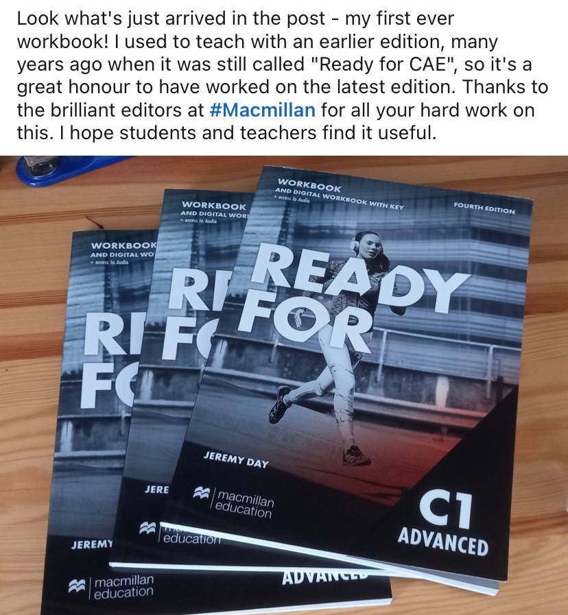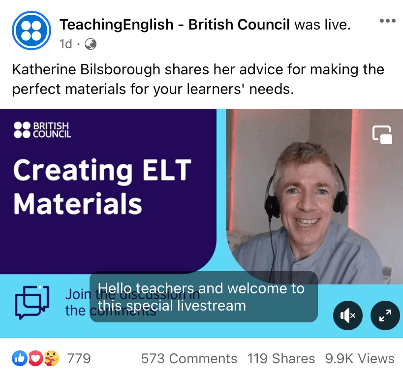 Katherine Bilsborough on (I think 2) FB Lives: Creating ELT Materials. Haven’t listened to every minute as got distracted by the kids but some sound advice. Click here.