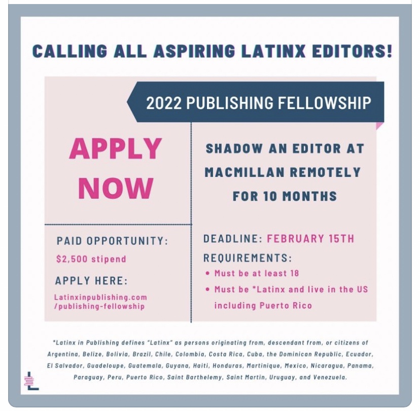 Obvs the deadline has passed for this fellowship for Latinx editors, but sharing anyway in case it’s an annual thing and you didn’t know about it.