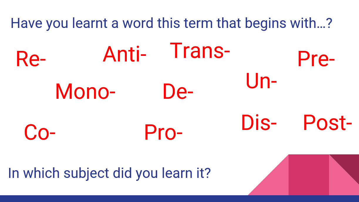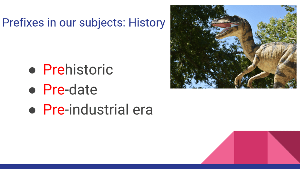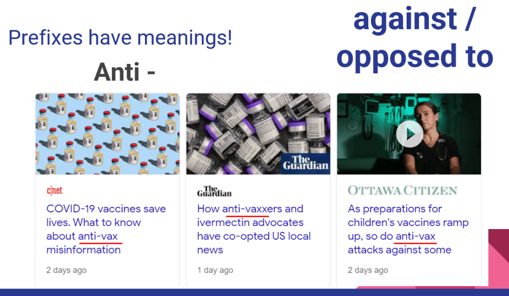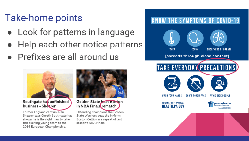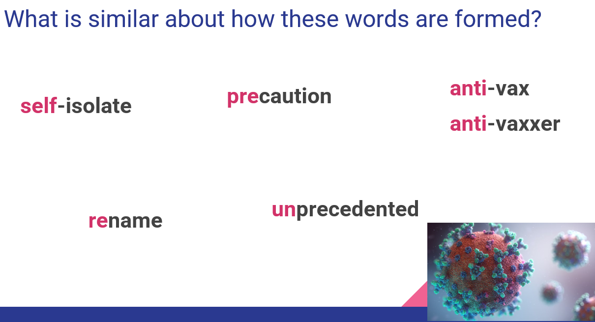 I did a quick session on prefixes. It was at the tail-end of the pandemic/school closures here in Thailand, hence using that as the main example: