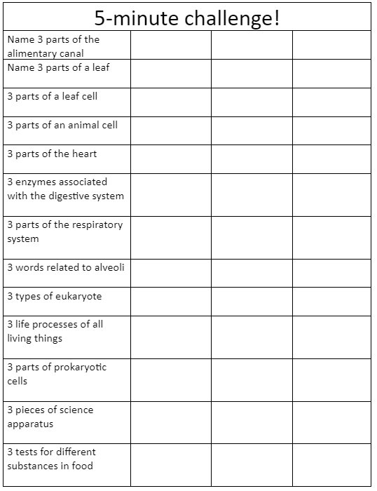 Around assessment time you could give the learners blank copies of these grids. They choose a subject, create their own ‘Name 3…’ statements, and you can use the student-generated resources for Smart Starts (or a longer activity, pinpointing topics to review?). Print on A3, laminate, create a reusable ‘challenge bank’ in the class. Also a good filler/stirrer.