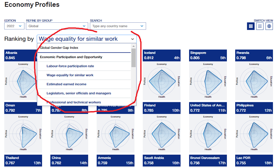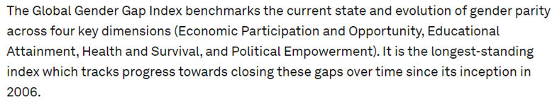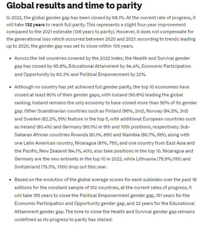 I’ve been writing a module on gender equality recently. As part of the research, I’ve read (chunks of) the World Economic Forum Global Gender Gap Report 2022: