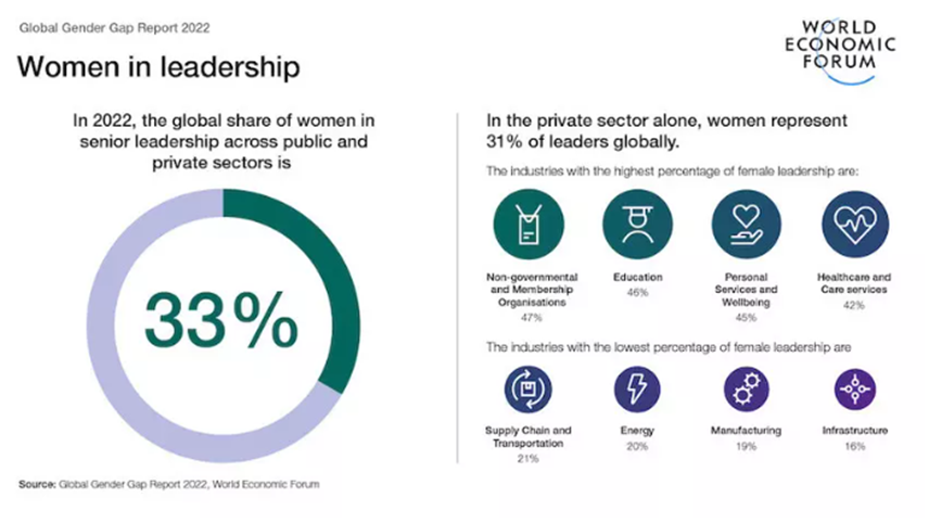 Why are only 33% of senior leaders in the public and private sector women?