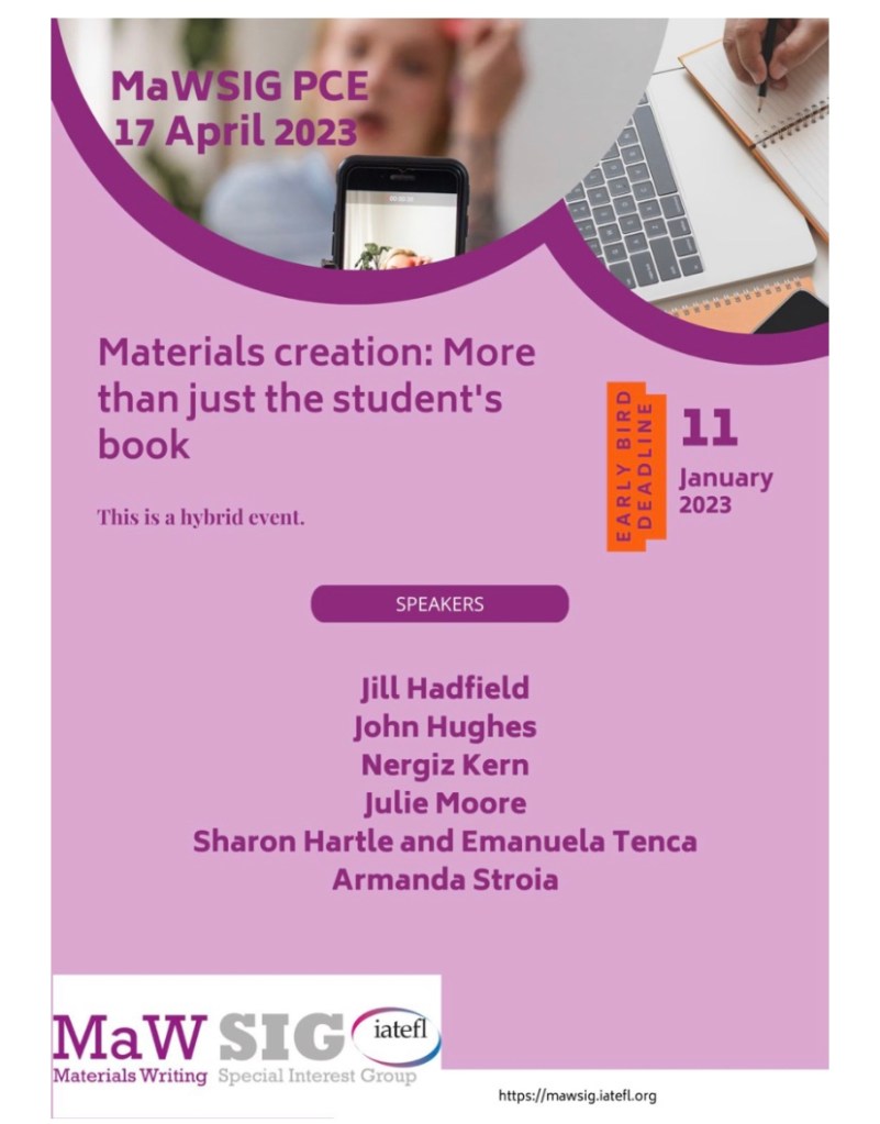 John Hughes and Kath Bilborough are running a new training course on writing ELT materials. You can find out all the info on their site, click here. There are quite a few vids about materials development on their YouTube channel now too, I need to catch up on those.