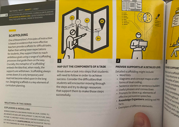 This is a super resource that serves many purposes. It’s a great bank of strategies for developing core teaching skills. It’s a useful grounding in (some of) what’s currently considered ‘good practice’. It’s a springboard for further research, a handbook full of things to ponder in your down time, a guide-on-the-side (as there’s a clear practitioner’s voice throughout the resource), and would be a great reference tool for CPD programmes – especially higher up the school. The strategies are wide-ranging, and yes, the authors *perhaps* cherry pick ‘evidence’ at times for what is considered effective practice. Don’t we all…