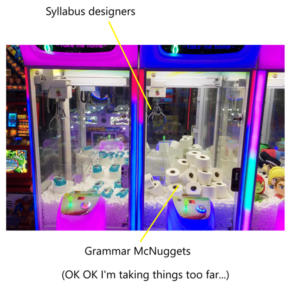Materials writing conversations #15: The Amusement Arcade By Pete on May 22, 2023 • ( 0 ) We’re off to the amusement arcade for publishers! Yes, it’s for amusement only… Share this: Click to share on X (Opens in new window) X Click to share on Facebook (Opens in new window) Facebook Click to share on LinkedIn (Opens in new window) LinkedIn Click to share on Tumblr (Opens in new window) Tumblr Click to share on Reddit (Opens in new window) Reddit Click to share on Pinterest (Opens in new window) Pinterest Click to email a link to a friend (Opens in new window) Email Click to share on Pocket (Opens in new window) Pocket Like Loading...‹ Materials writing conversations #14: The Packager’s Price Is Right!Crusader of ELT Materials Writing: Part 1 ›Categories: General, materials writingTags: conversations, elt, materials writing, tefl