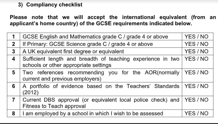 Note: you DON’T actually need to have a formal portfolio of evidence (number 6) at the compliancy stage of application. You submit all the other info, THEN your application is ‘forwarded to the next stage’. That’s the interview…