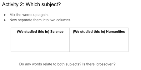 This did fit quite well with CPD sessions at the start of the year; we’d had some external training from EAL Inclusive on the importance of academic vocab development, so this seemed a natural follow-up.