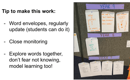And encouraged teachers to give themselves a ready-made opportunity for review activities like this by having envelopes for new vocab displayed prominently in classrooms: