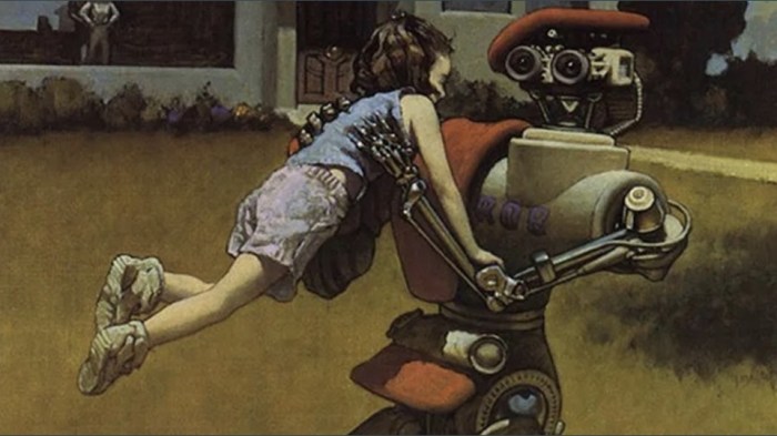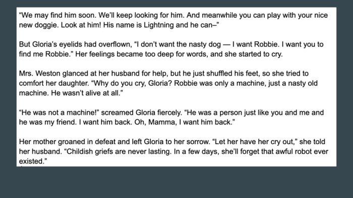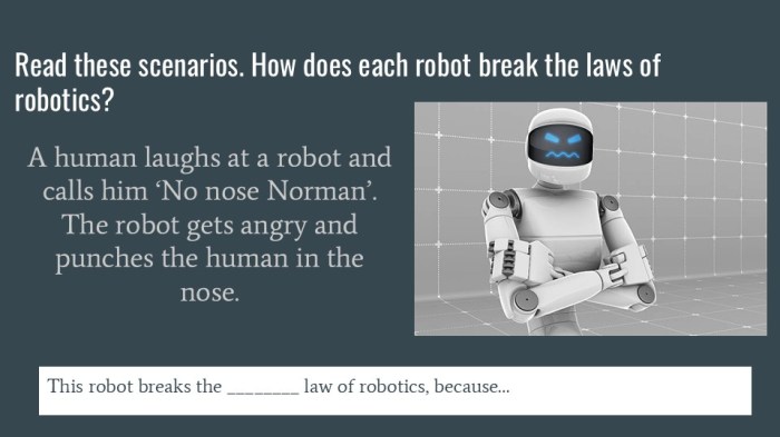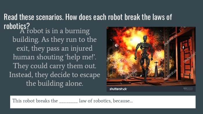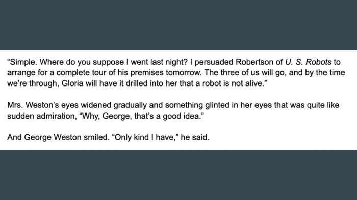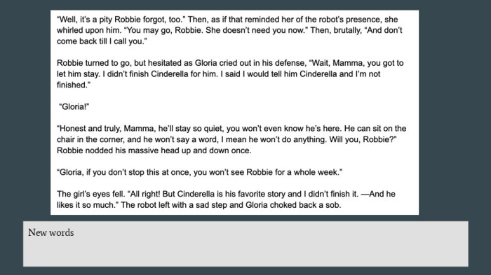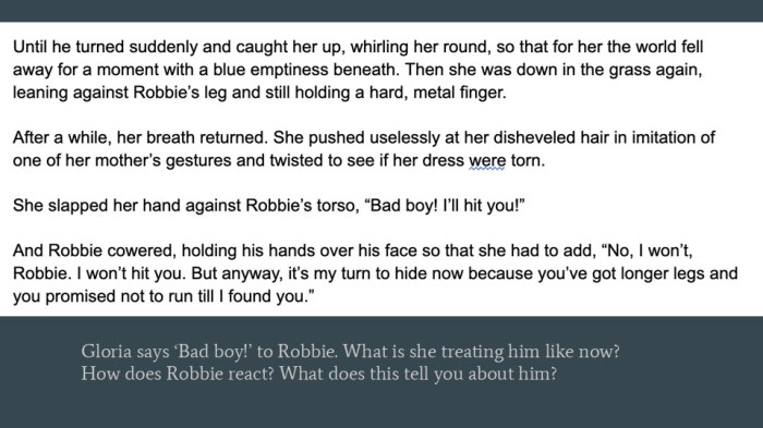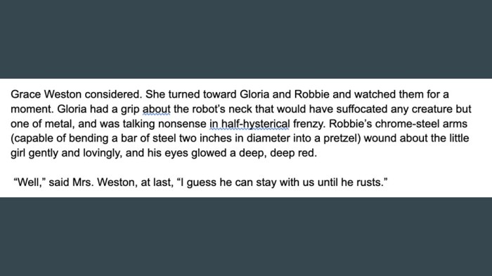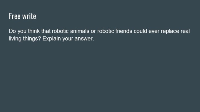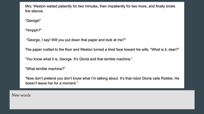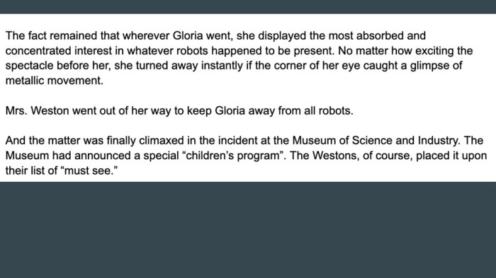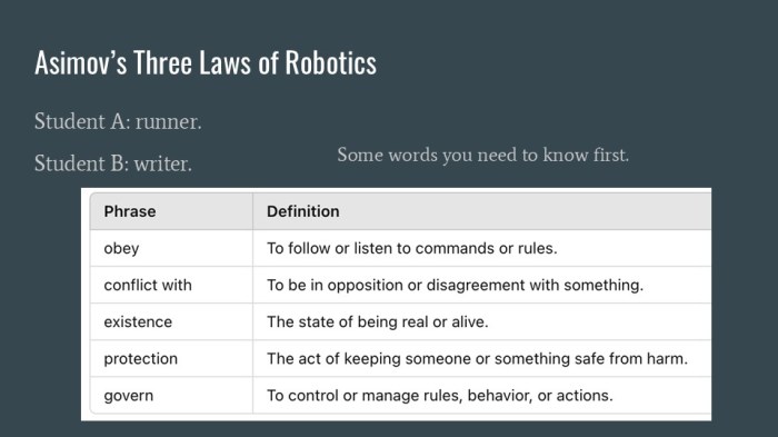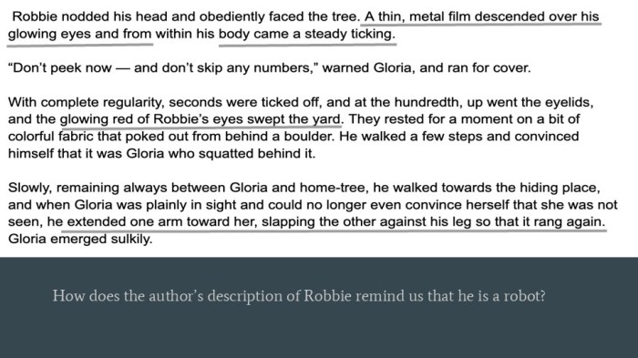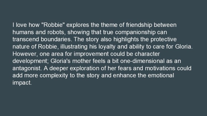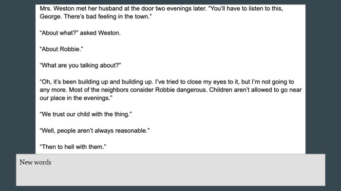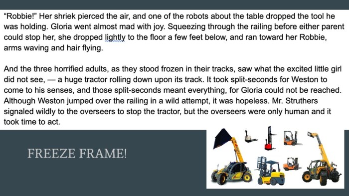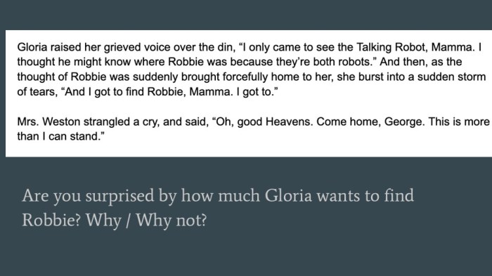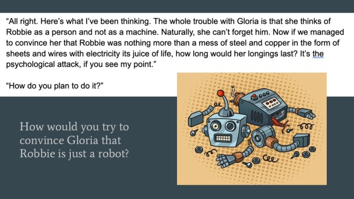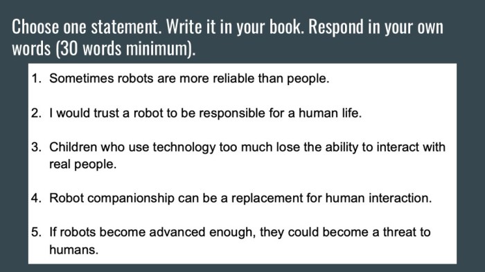 Last year, I was teaching a group of A1-A2 level multilinguals (Year 8, aged 13) in a support group. We were looking to introduce them to authentic literature. I had a flick around on Teachers Pay Teachers and found that someone had adapted Robbie (Asimov) into an even shorter version. I downloaded it and built our content around it. Here were the slides – the videos are embedded if you download it: