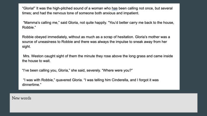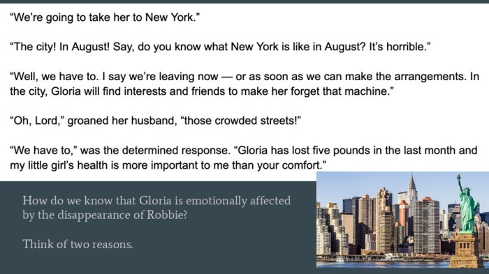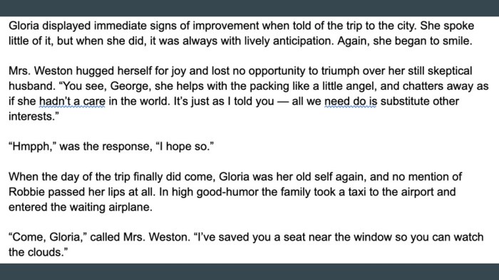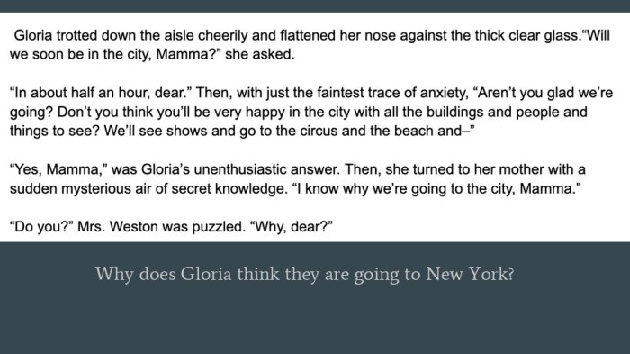 her 59 “Gloria withdrew her chubby little forearm from before her eyes, and stood for a moment, wrinkling her nose and blinking in the sunlight.
