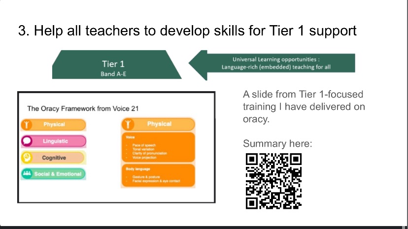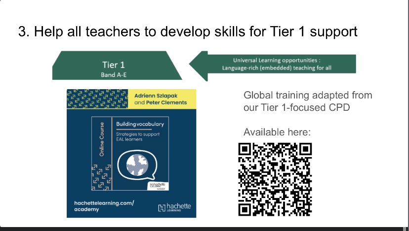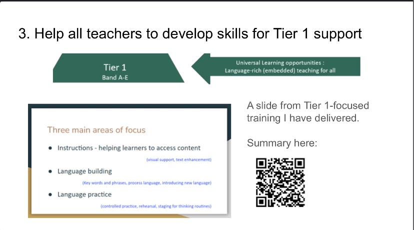 In my role as Head of EAL in the High School at St Joseph’s Malaysia, I delivered further training on Tier 1 aspects of provision, such as ways to review vocabulary, and supporting learners in developing their oracy skills.