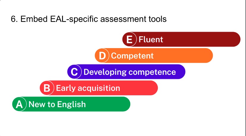 - Regular assessment against EAL-focused assessment