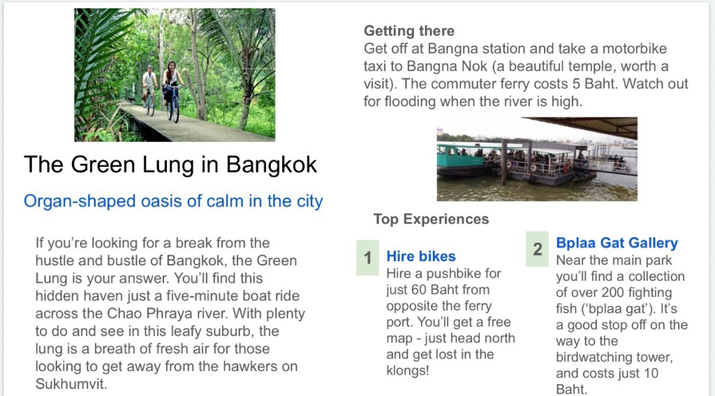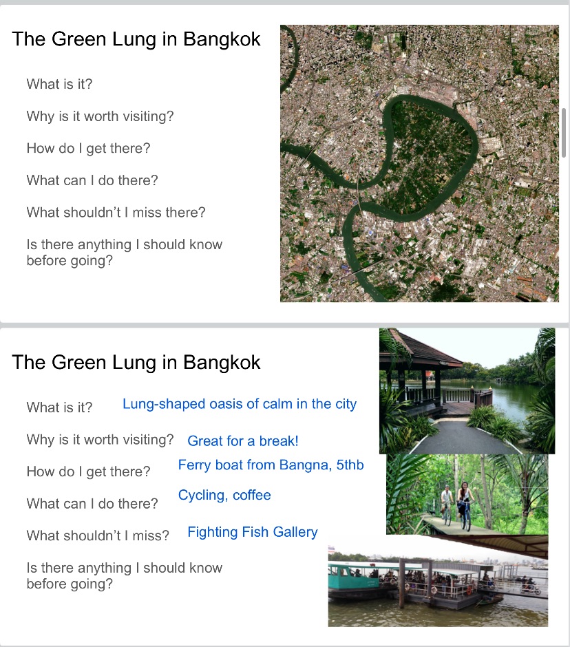 Then I personalized things by having learners think about a local attraction they knew – The Green Lung in Bangkok.