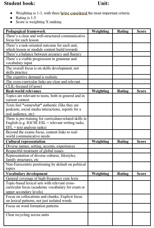 I’m using more coursebooks in my current practice than I have done in a long time. This has put the importance of coursebook evaluation on my radar again.