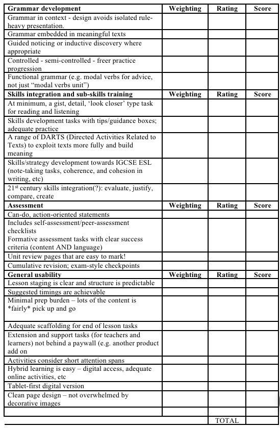 Creating a coursebook evaluation checklist