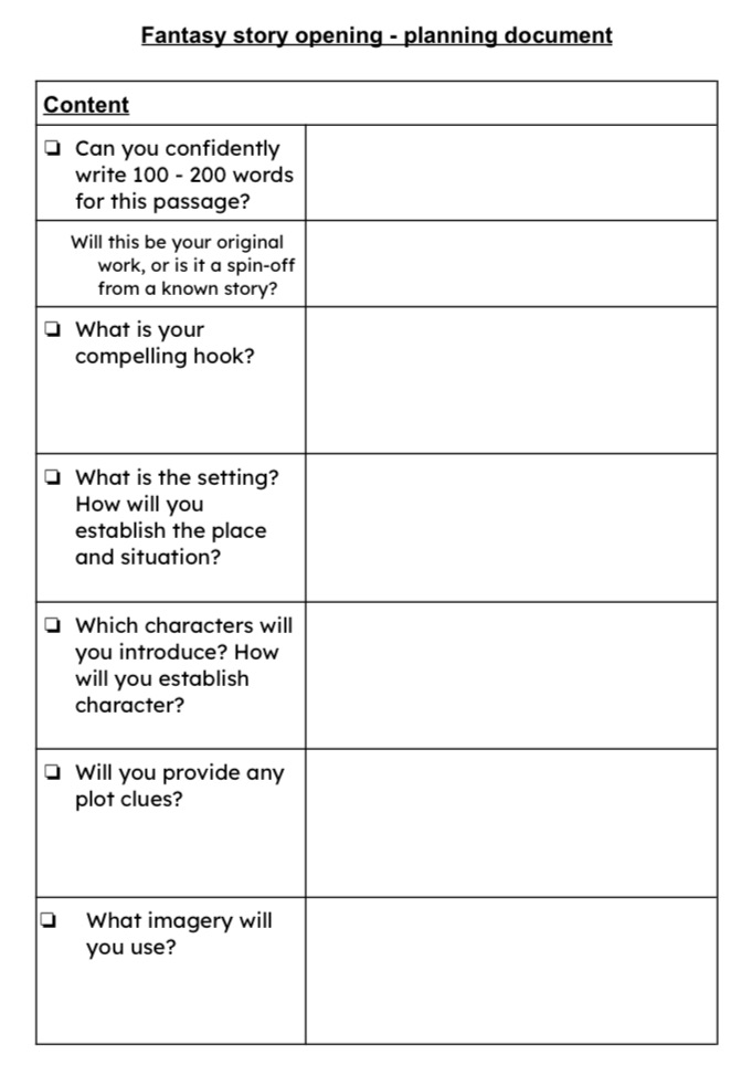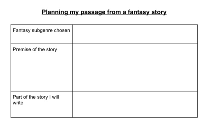 When it came to the end of unit assessment, in which learners wrote their own extract from (any part of) a fantasy story, I felt that more scaffolding was needed at the planning stage.