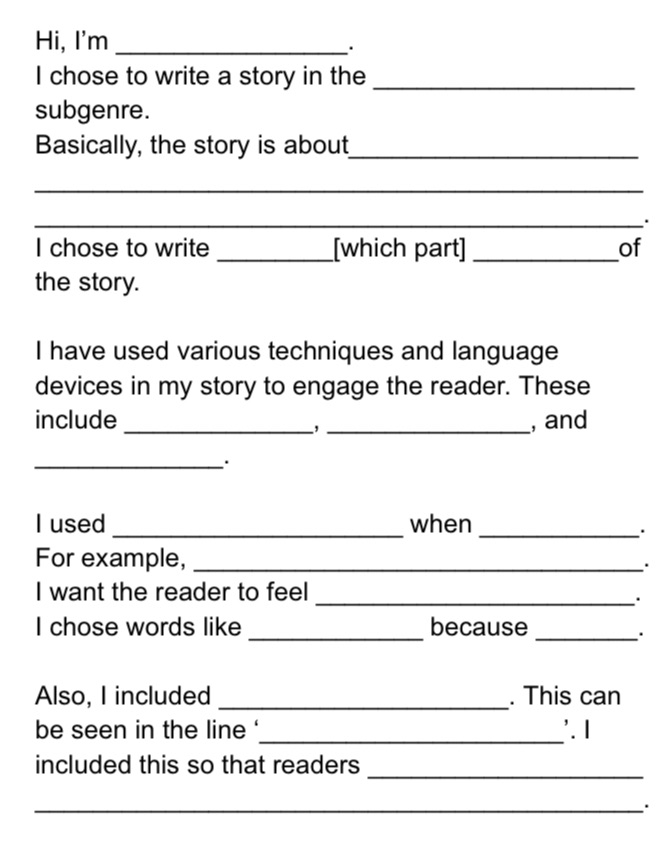 I got each learner to create a video ‘rationale’ explaining their language choices. I provided a script if needed: