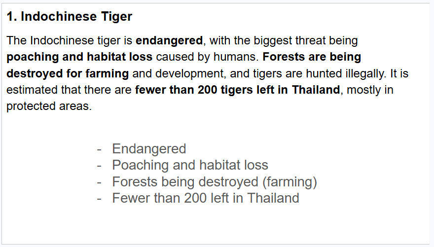 Topic: Endangered animals in Thailand. The topic of conservation came up in our coursebook Global English 9, Unit 5: Science.