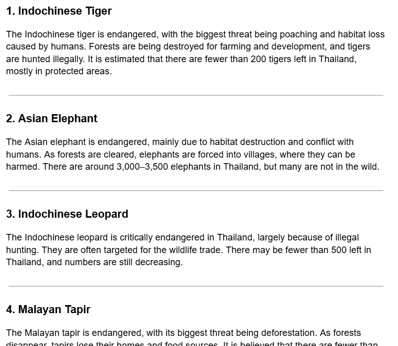 Me: What’s the conservation status of the Asian Elephant in Thailand?