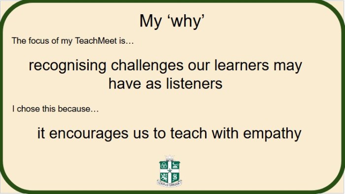 Last year, I highlighted some challenges that developing language learners might face when it comes to listening. I used the Botanic Metaphor (Cauldwell) to explain this, and mention some implications for classroom practice. Here are my slides: